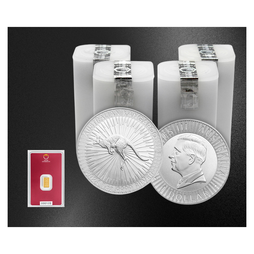 Isporučuje se: 4 x zatvorena Kangaroo cijev + 1g zlatne poluge kao poklon (Münze Österreich, Argor-Heraeus, Valcambi, Njemačka)